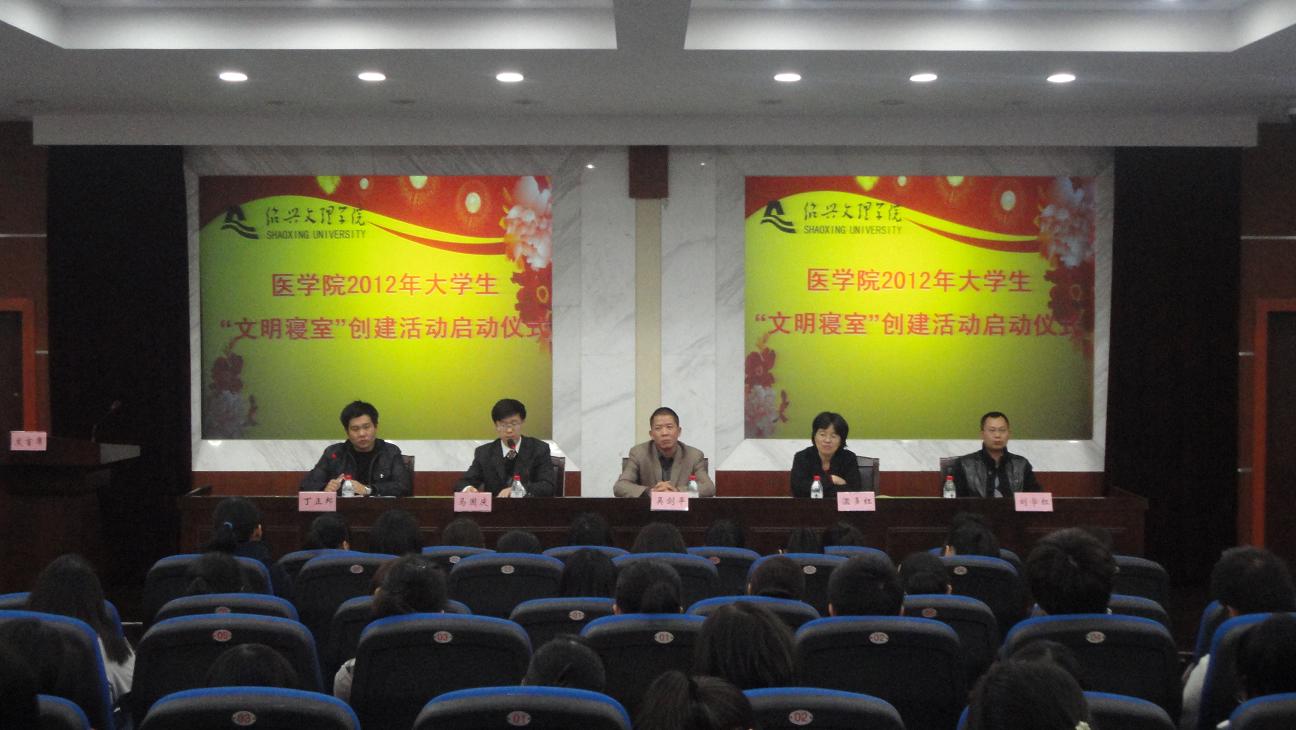 11月16日中午,新葡的京集团350vip8888官网2012学年大学生“文明寝室”创建活动启动仪式在财贞楼二楼学术报告厅隆重举行。院党委副书记吴剑平,办公室、教研科、学生科相关负责人,辅导员,公寓自管会干部,各班班长、副班长和寝室长代表近180人出席启动仪式。