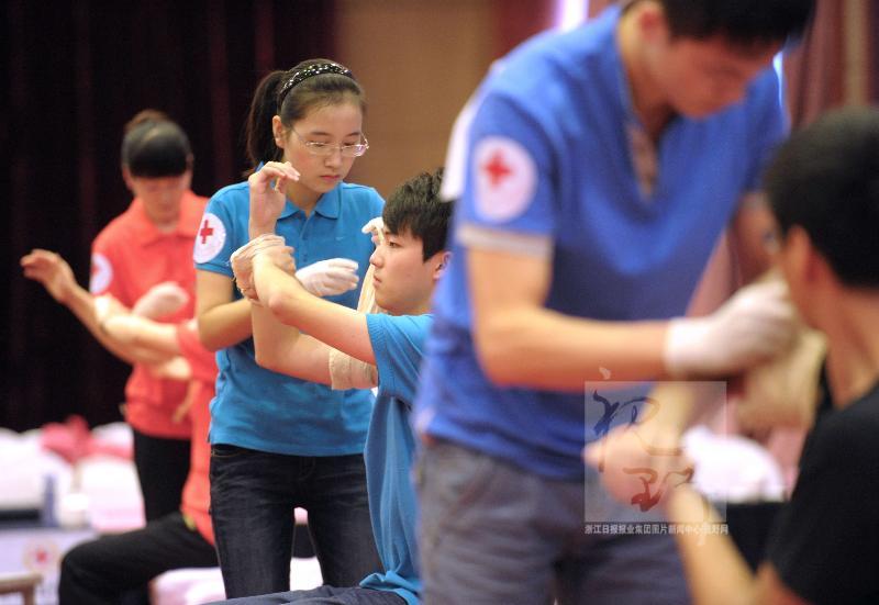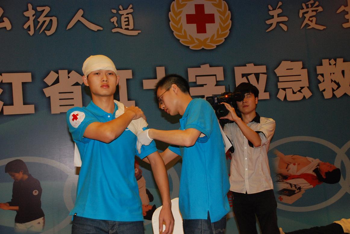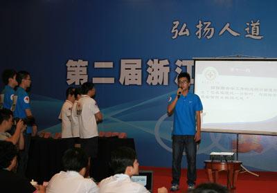 浙江省第二届红十字应急救护技能大赛于7月23日至24日在杭州举行,来自全省各地市的11支代表队的近60名红十字救护员们先后进行了包括红十字运动知识、初级救护理论在内的理论知识竞赛和救护技能操作竞赛,在现场进行了心肺复苏、止血、包扎、固定、搬运等5个大项8个小项的技能操作比拼。