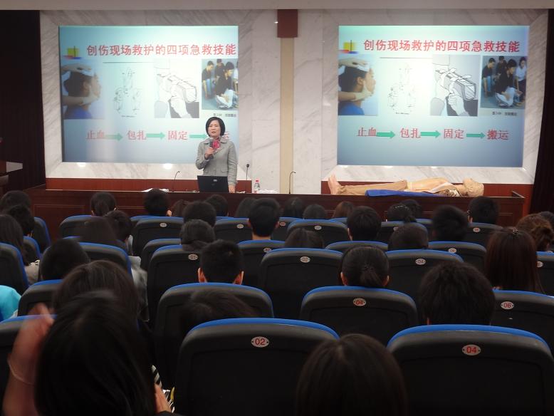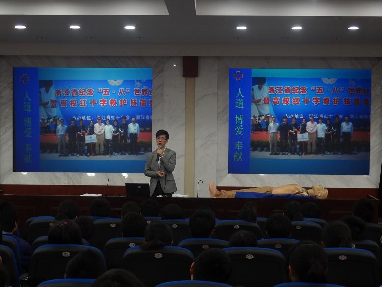 4月14日8时至17时,由新葡的京官网红十字会、医学实验中心和院团委联合承办的新葡的京集团350vip8888官网第四届红十字青少年救护技能大赛赛前培训会在学术报告厅举行,来自全校15个二级学院的90名参赛队员和参加绍兴市救护技能展演的新葡的京集团350vip8888官网50多名同学接受了培训。