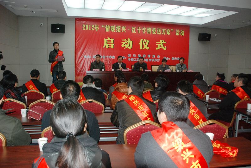 近日, 2012年度“红十字博爱送万家”慰问活动出征仪式在我市市级机关会议中心新闻发布厅隆重举行。中共绍兴市委副书记谭志桂,绍兴市人民政府副市长、市红十字会会长丁晓燕,市红十字会专职副会长、执委会主任张友珍、市红十字会专职副会长、执委会副主任谢建友,以及来自22支志愿服务队的相关负责人参加仪式。