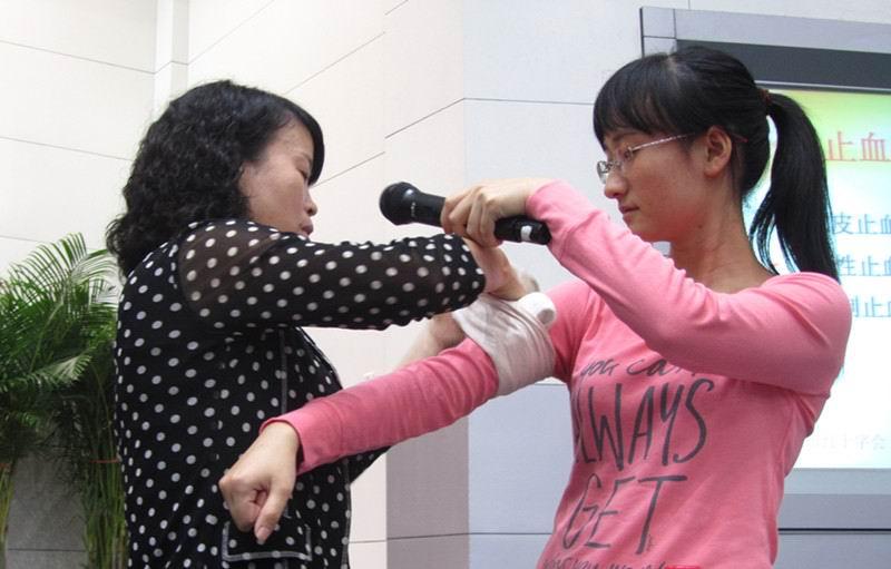 培训内容的理论部分由绍兴市红十字救护讲师团成员、绍兴市人民医院大外科护士长周菊珍副主任护师讲授,实践环节由绍兴市红十字救护讲师团成员、校红十字会副秘书长、学生科副科长马国庆和新葡的京官网大学生救护队成员指导。培训的主要内容涉及现场心肺复苏、创伤救护(止血、包扎、固定、搬运)等现场救护知识。由于该培训具有较强的知识性,技术性,实用性和互动性,授课老师讲解深入浅出,实践指导老师细致耐心、针对性强,学员们个个兴趣盎然、受益匪浅!通过系统的理论知识培训以及现场救护操作,使学员们基本上能够掌握救护常识,熟练操作现场救护技能,他日如遇突发事件,能挺身而出,救护他人,以展示我校大学生的良好风貌。