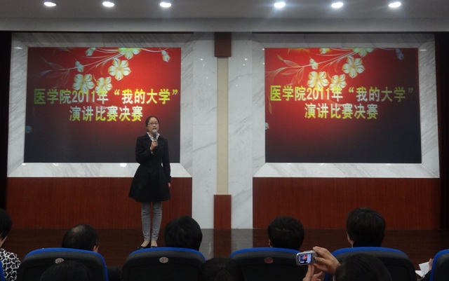 比赛中,15位参赛选手们的演讲或慷慨激昂,或温婉动人。精美的PPT画面、真挚的话语,从不同角度表达了自己对大学生活的认识和感悟,博得了现场同学的阵阵掌声。其中,护理103班的顾晓洁借出色的发挥淋漓尽致地诠释了“我的大学”这一主题,将现场的气氛推向了高潮。最终本次比赛一等奖由护理学103班的顾晓洁获得,二等奖由护理学(元培)1102班张明星、临床医学112班陈珊珊获得,三等奖分别由护理学113班梁吕婷、护理学114班潘曼、护理学103班丁金燕获得。