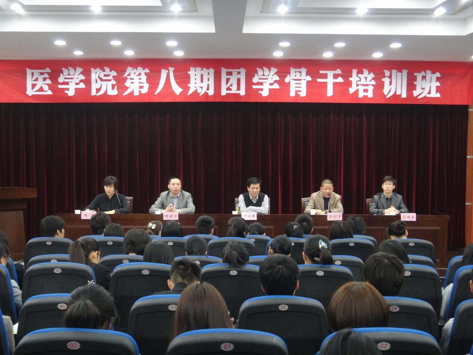为进一步贯彻落实中国共青团十六届四中全会精神,全面提高广大团干部和学生干部的思想政治素质和工作技能,加强学生干部之间的交流合作,从而进一步提升新葡的京官网学生组织的效能,推动学院团学工作更上新台阶,新葡的京官网举办了第八期团学骨干培训班。10月30日,伴随着嘹亮的中国共青团团歌,第八期团学骨干培训班开班仪式在财贞楼二楼学术报告厅隆重举行。校党委委员、院党委书记叶访春,院党委副书记吴剑平,校团委副书记周旗江,学生科副科长马国庆出席开班仪式。开班仪式由院团委书记赵华主持。院团委、学生会副部长级以上学生干部,辅导员助理,各社团负责人,09、10、11级各班班长、团支书、副班长等150多名团学骨干参加了开班仪式。