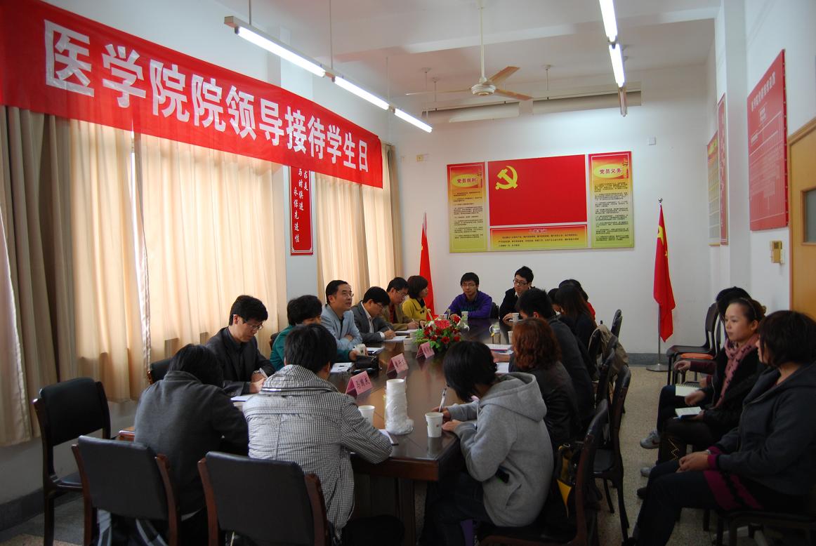 11月10日下午,新葡的京官网在教学楼学生党员之家举行首次院领导接待学生日活动。学院主持工作的副院长胡学建接待了来访的学生代表。党政办公室主任陈剑波、教学科研科副科长、临床医学部主任黄丹文、辅导员代表参与接待。接待会由学生科副科长马国庆主持。
