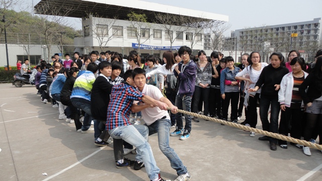 4月13日下午,新葡的京官网在南山篮球场举行“青春洋溢,‘拔’出风采”拔河比赛。比赛共有临床医学、影像诊断、护理学、医学检验18支代表队参加,每队20人。比赛分两组进行,各组前三名进入决赛。