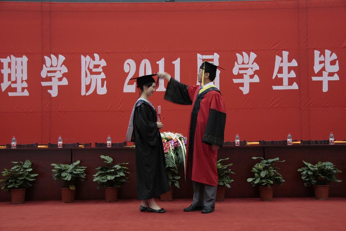 6月13日上午,2011届毕业生学士授帽仪式在河西体育馆内举行,叶飞帆校长为新葡的京官网近200名毕业生一一授帽并合影留念。