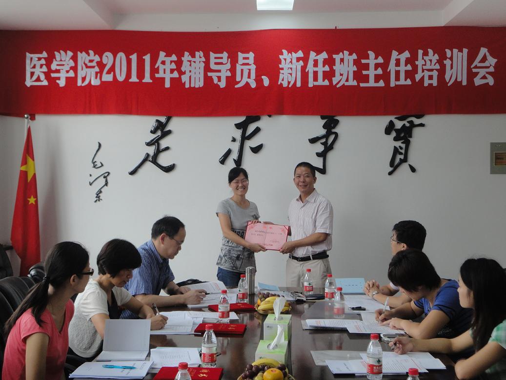 培训会上,院党委副书记吴剑平代表学院为7位2011级新任班主任颁发聘书,并结合自身多年学生工作经验,就如何做好班主任工作进行了专题讲座。吴剑平副书记强调,班主任是学生班级工作的领导者和组织者,是学生思想政治教育和管理工作的主要组织者和实施者,是班级工作的第一责任人。吴剑平副书记指出,班主任工作涵盖学生思想政治教育、安全稳定、日常教育与管理、营造良好学风、综合考评和奖惩、心理健康与资困助学等六大方面工作。吴剑平副书记要求,新任班主任要和辅导员通力配合,注意研究教育管理工作的方法,不断积累和总结经验,创造性地开展工作,提高工作效率与水平。