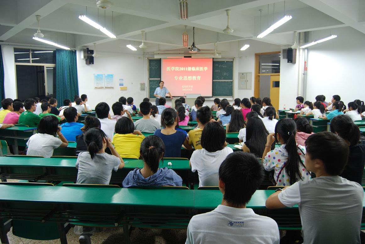 9月8日晚,临床医学部在财贞楼217举行2011级新生临床医学专业思想教育。新葡的京集团350vip8888官网副院长胡学建作重要讲话,临床医学部主任黄丹文、副主任葛志强为临床专业2011级新生作精彩报告。葛志强教授着重从临床医学概念、学习内容、学习目标等介绍了学什么的问题,从知识面、能力培养、自主学习等方面介绍了怎么学的问题。接着,临床医学部主任黄丹文老师向新生介绍了新葡的京官网教学管理单位、机构设置、师资队伍、课程设置、教学活动安排、职业规划等内容,并鼓励大家今后要积极参加各种科研和技能竞赛活动。胡学建副院长在总结个人学习和管理经验的基础上,向2011级新生提出了三点要求。一要注重学习。学习要静下心来,严格要求自己,夯实基础。二要注重职业素养。作为医学生要注重培养自己的职业道德,发挥大医精诚,医者仁心的精神。三要注重医学人文教育。教导大家要注意培养自己的人文精神,注重人文关怀,更好地为病人服务。
