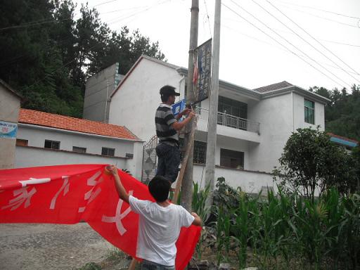 里南乡位于嵊州市西南部,距市区23千米,东邻新昌县,南毗东阳市。一路上,只见山路崎岖狭窄,山林葱郁茂密,几经辗转,几经周折,先驱实践小分队于10点左右顺利到达了里南乡。他们的任务主要有三项:一是联系乡卫生院院长敲定医疗卫生实践服务团专家义诊具体事宜并协助做好现场诊室环境的布置工作;二是联系乡团委书记商量于敬老院探望孤寡老人相关事宜;三是发放义诊宣传单、挂横幅,让乡民更全面地了解实践团下乡开展免费义诊的相关情况。
