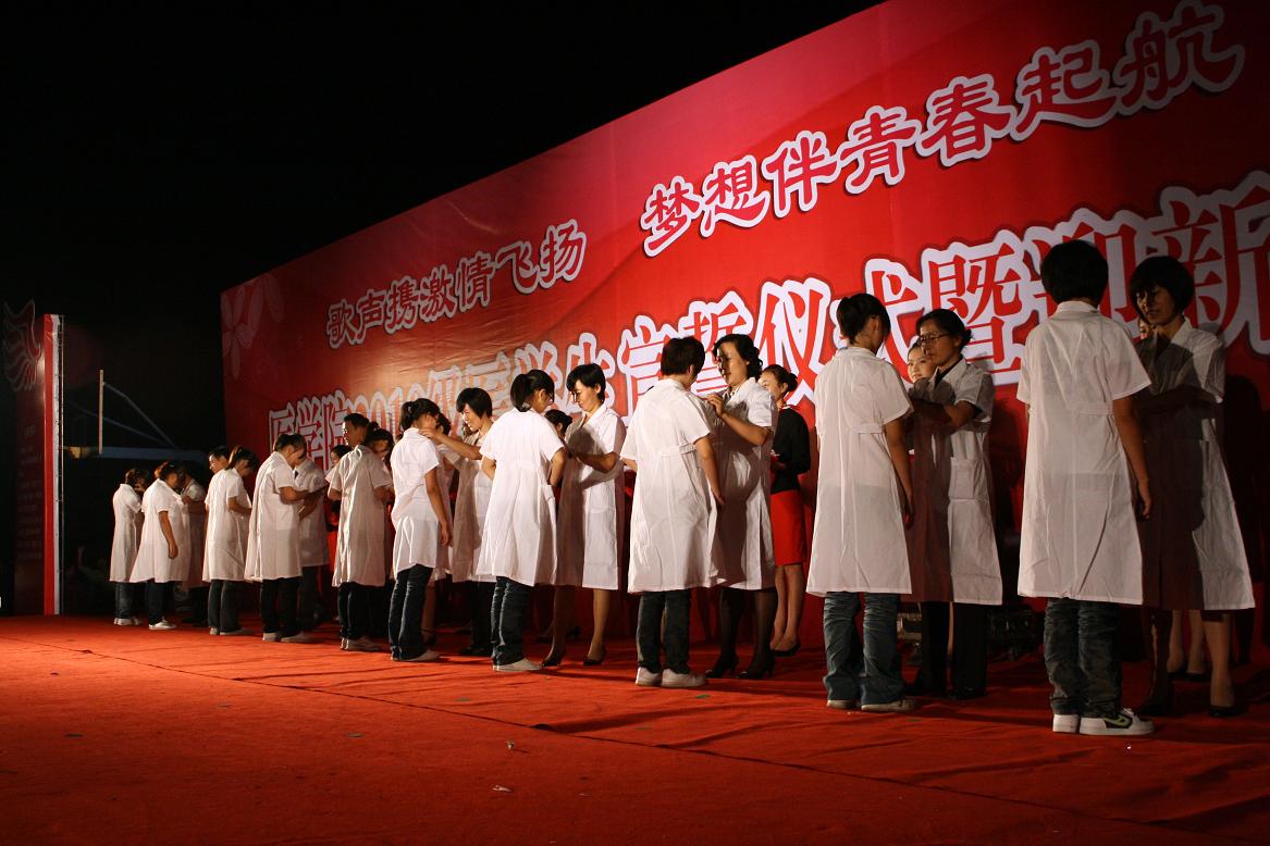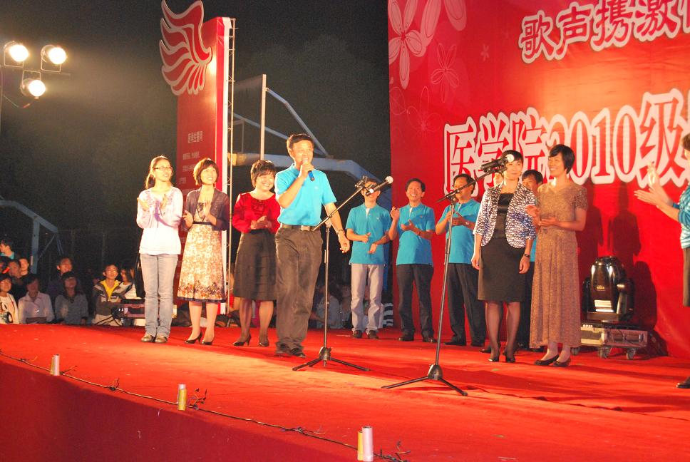 10月8日晚,新葡的京集团350vip8888官网团委主办、院学生会承办的“歌声随激情飞扬,梦想伴青春起航”新葡的京集团350vip8888官网2010级医学生宣誓仪式暨迎新晚会在南山校区篮球场隆重上演。校学工部副部长石旭明,校保卫处副处长冯光明,校团委书记应尧刚,学院领导班子成员、各科室系部负责人、新生班班主任及全体新生共同分享了这场精彩的视听盛宴。
