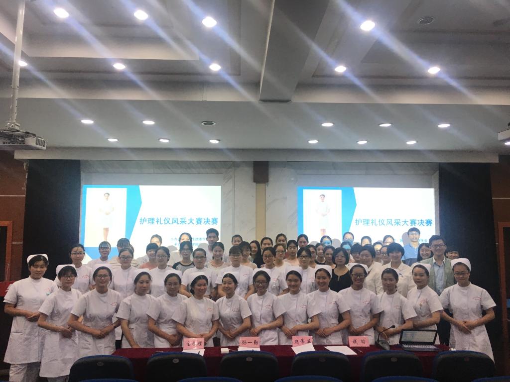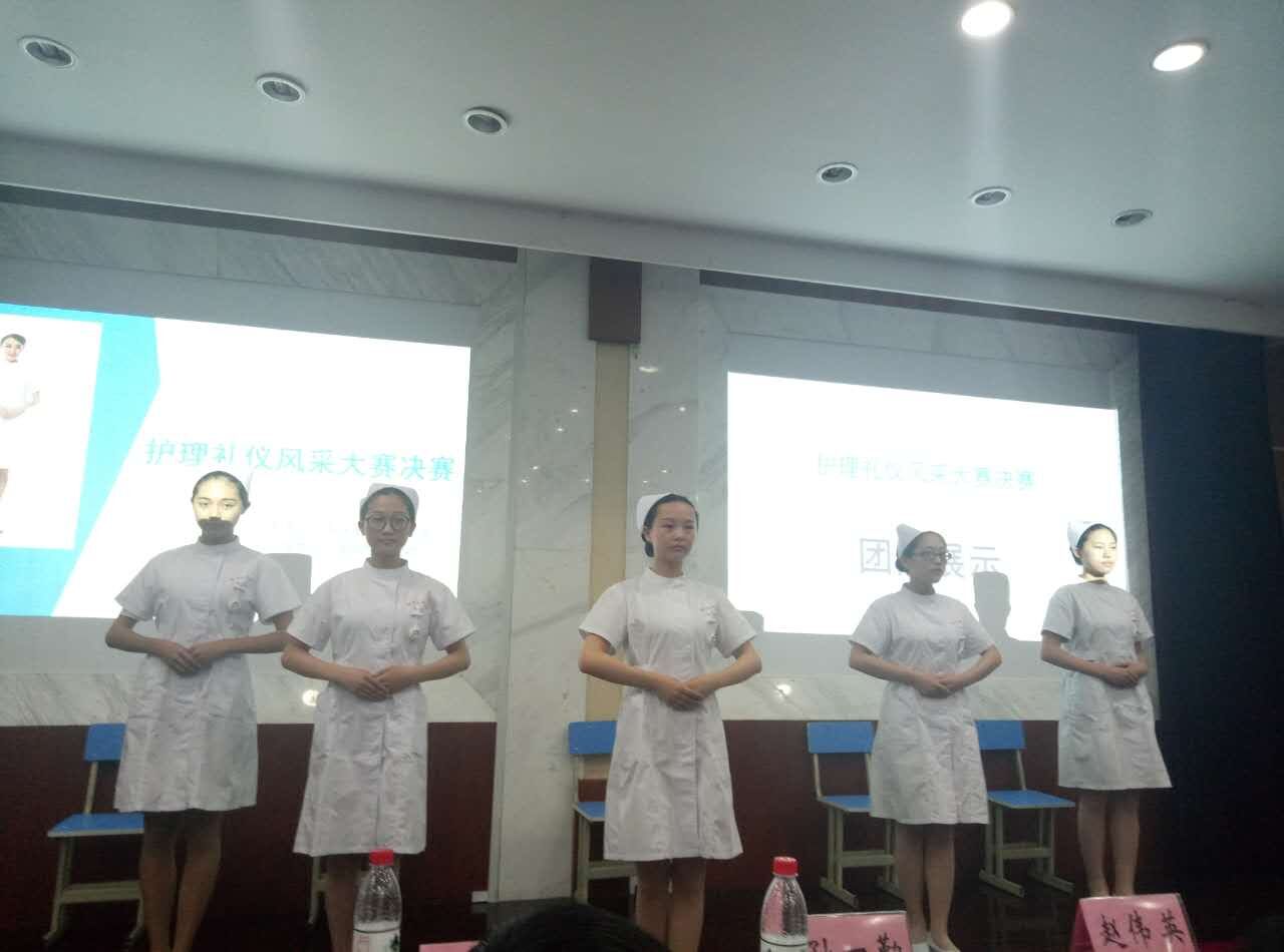 本次决赛分两个环节,第一环节是团队护理礼仪展示,选手们分别将护理仪容礼仪,举止礼仪,言谈礼仪,交往礼仪等精心编排展示,给人焕然一新的感觉。参赛队员们通过规范得体的动作,向大家展示了护士在日常工作中的站姿、走姿、蹲姿、端治疗盘、持病历夹等标准动作。她们淡妆上场,身形挺拔、自然、优雅。她们行走抬足有力,柔步无声,她们用温暖的微笑、规范的着装、优雅的动作,充分展现了身为一名护士的良好形象,给在场观众留下了深刻的印象。