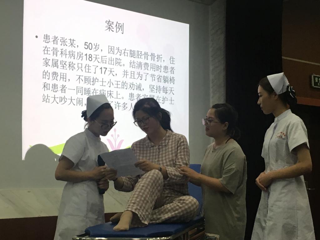 第二环节,护理情景剧表演,每一个短句,参赛选手们都倾情演绎,刁钻的家属,难缠的病人,颓废的危重患者,羞涩的实习护士,稳重的护士长,一个个角色活灵活现,生动活泼,观众们观看表演,仿佛身临其境,对于演员们的表演赞叹不已。每一个案例纠纷,选手们都能灵活运用语言及非语言的沟通技巧,得到圆满的结局。