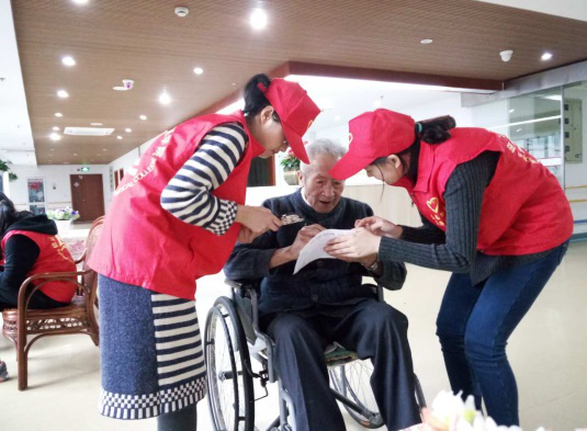 新葡的京集团350vip8888官网青年志愿者管理中心充分发挥志愿服务精神,用力所能及的力量发扬社会正能量,在福利中心,志愿者们与护工一起帮助老人测量血压,陪老人们聊天,还会在老人们生日时,为他们送去生日祝福。